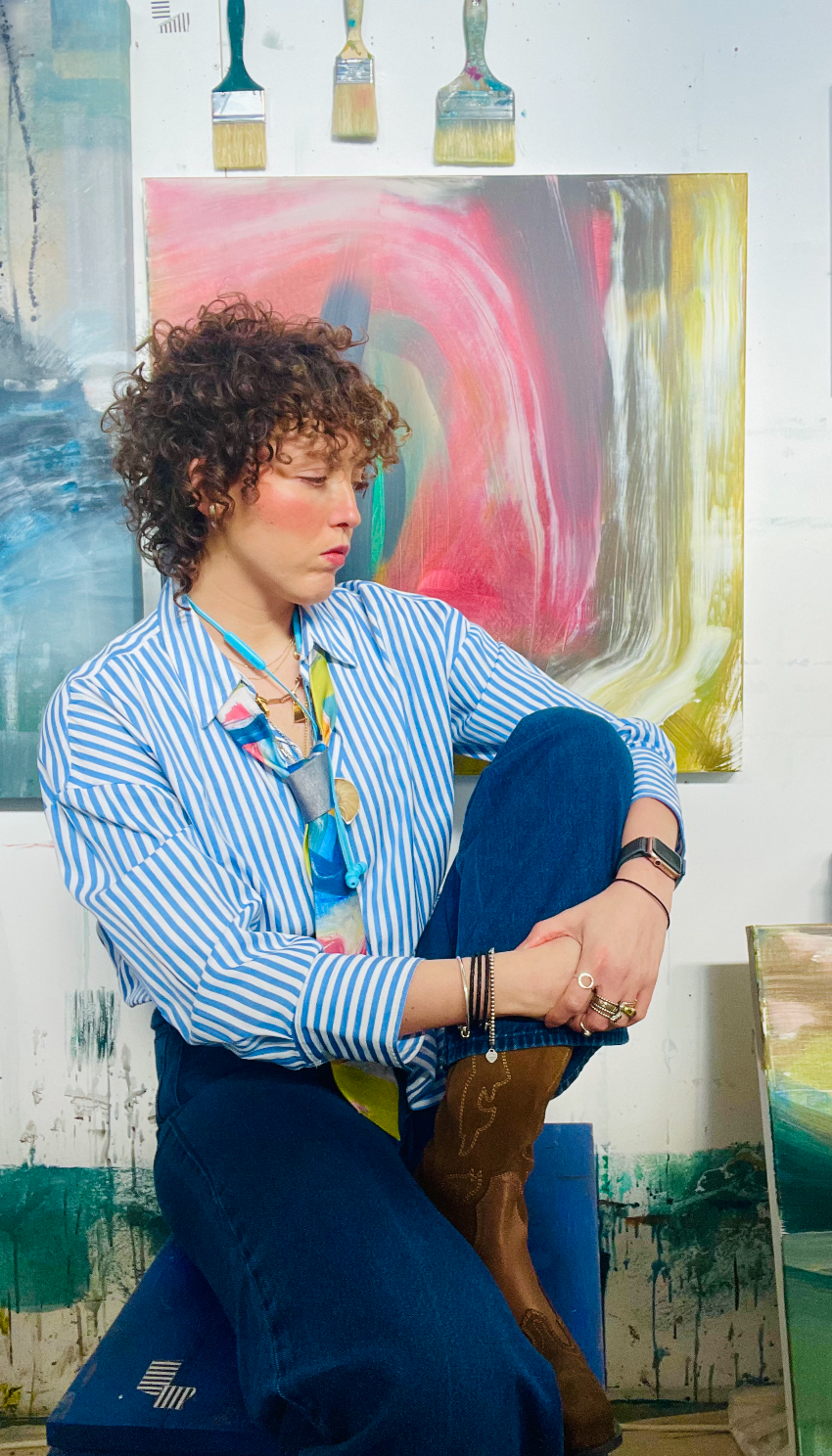Kate Morrison is a UK-based abstract expressionist whose work speaks quietly but deeply. Anchored in memory, emotion, and a lifelong urge to understand the world through creating.